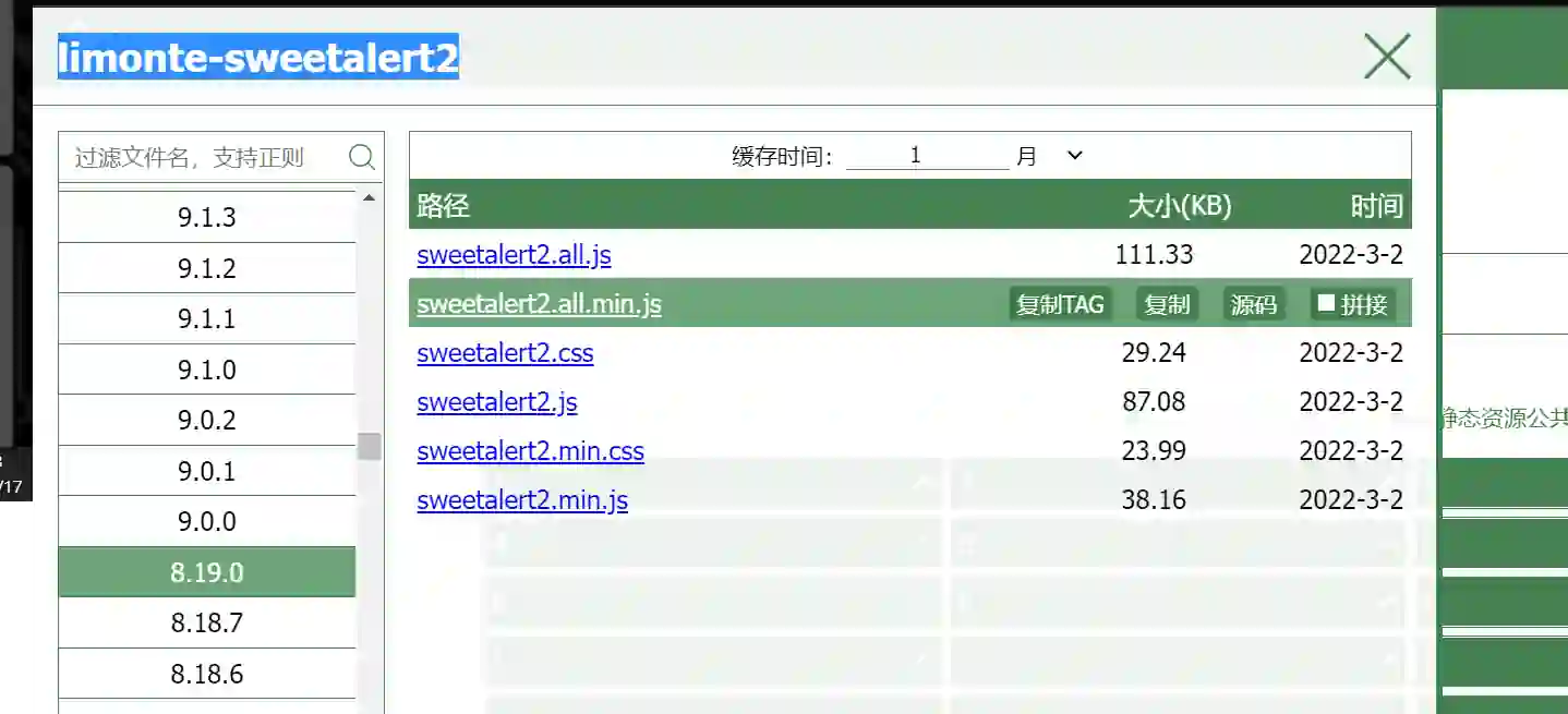 还是字节跳的的CDN,我们搜sweetalert2,点开limonte-sweetalert2